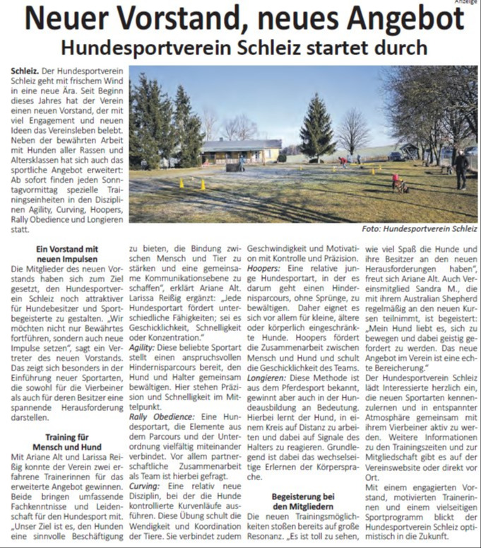 Mit einem neu gewählten Vorstand und einem deutlich erweiterten Trainingsangebot starten wir voller Energie in die neue Saison. Ab sofort könnt ihr bei uns nicht nur das bewährte Grundtraining besuchen, sondern auch spannende Disziplinen wie Agility, Hoopers, Curving, Rally Obedience und Longieren ausprobieren.